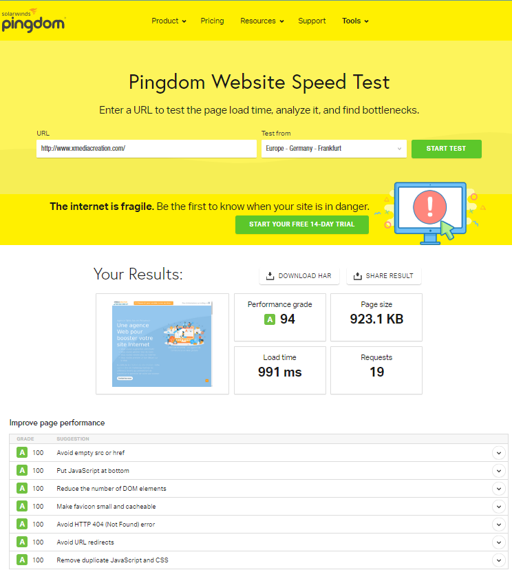 Il est donc nécessaire d’utiliser des outils objectifs, qui vont non seulement mesurer le temps de chargement suivant différents paramètres, mais en plus, analyser les éléments techniques de votre site Internet qui impactent positivement ou négativement sa vitesse.